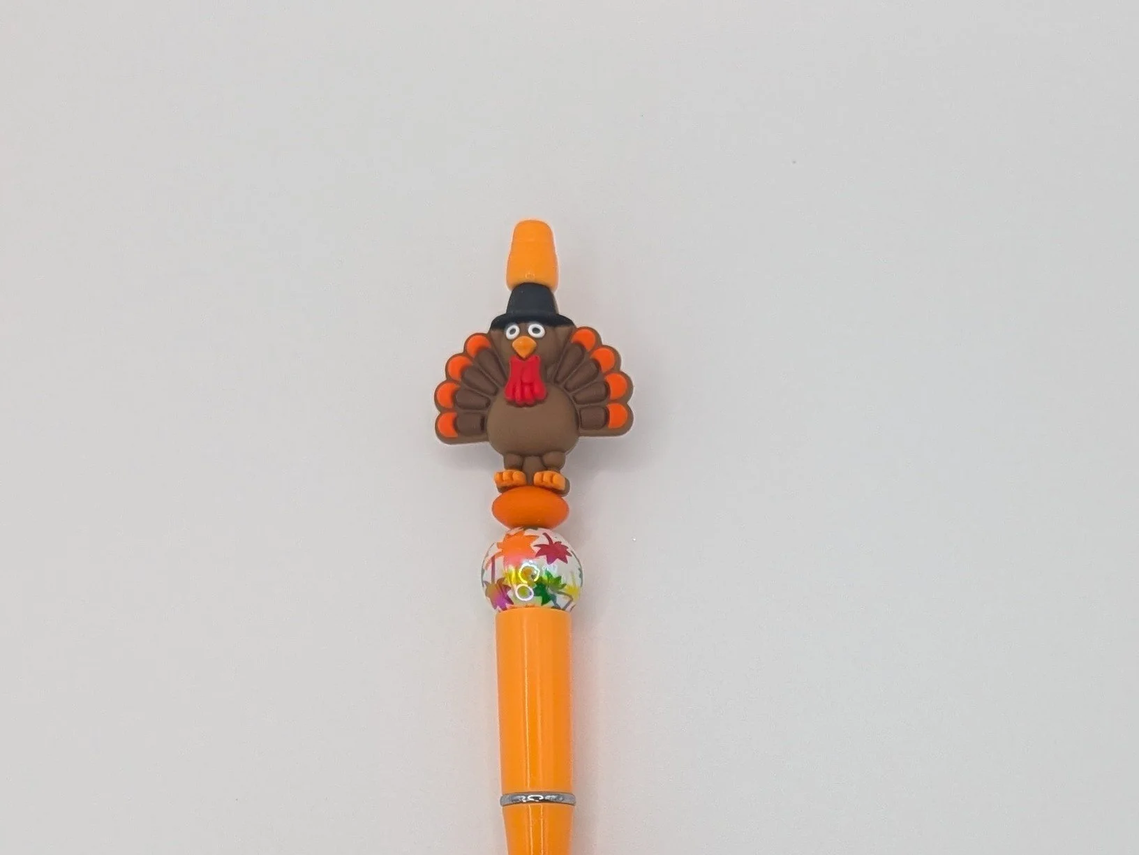 Get ready for Thanksgiving with this adorable Gobble Wobble beaded pen! Featuring a charming turkey focal bead in a little that, this pen is sure to bring a smile to your face. It's accented with a beautiful autumn leaf bead and festive orange colors, making it the perfect accessory for journaling, planning your holiday feast, or as a thoughtful gift for a teacher or friend. Write down everything you're thankful for in style!